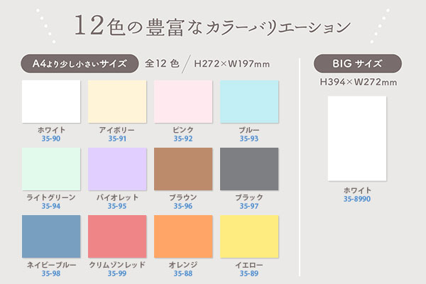 35-91(アイボリー) 35-92(ピンク) 35-93(ブルー) 35-94(ライトグリーン) 35-95(バイオレット) |